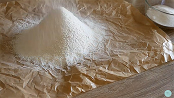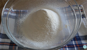 4. ร่อนน้ำตาลสำหรับทำขนม และส่วนผสมแห้งที่เตรียมไว้อีกหนึ่งรอบค่ะ