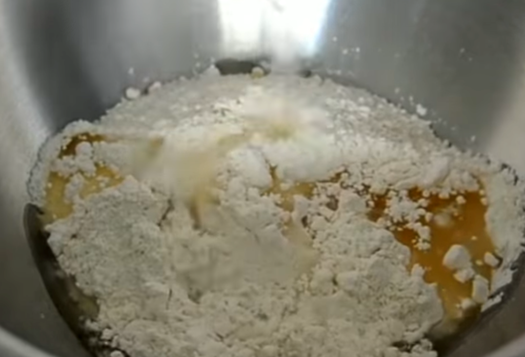 1. นำแป้งสาลี แป้งข้าวเจ้า เกลือ น้ำตาลทรายละเอียด เนยสด และไข่ไก่ มาผสมรวมกัน แล้วค่อยๆนวดไปเรื่อยๆ
