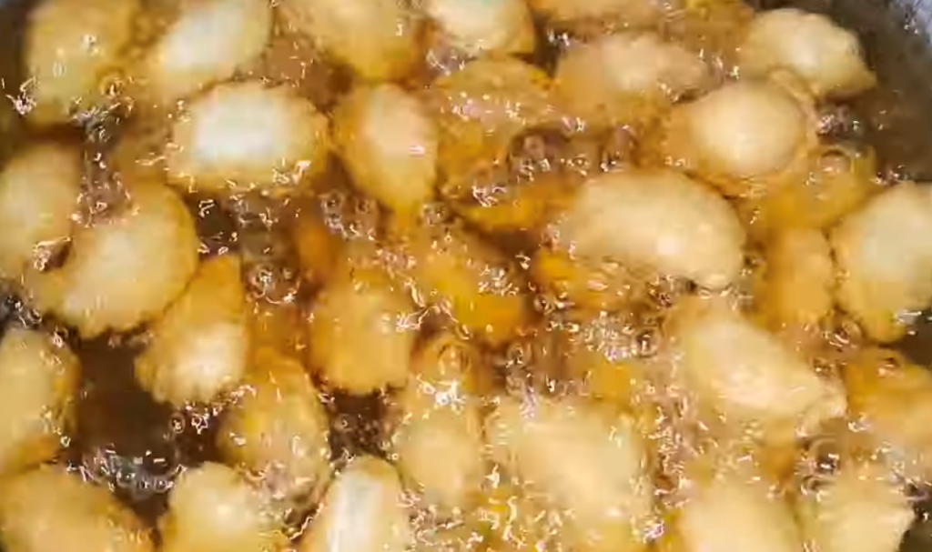 3. นำขนมที่ปั้นไว้ลงทอดใช้ไ ฟ กลางค่อนข้างอ่อน จนสุ กตักขึ้น ปล่อยขนมให้เย็น เก็บใส่ภาชนะ ปิดให้สนิท