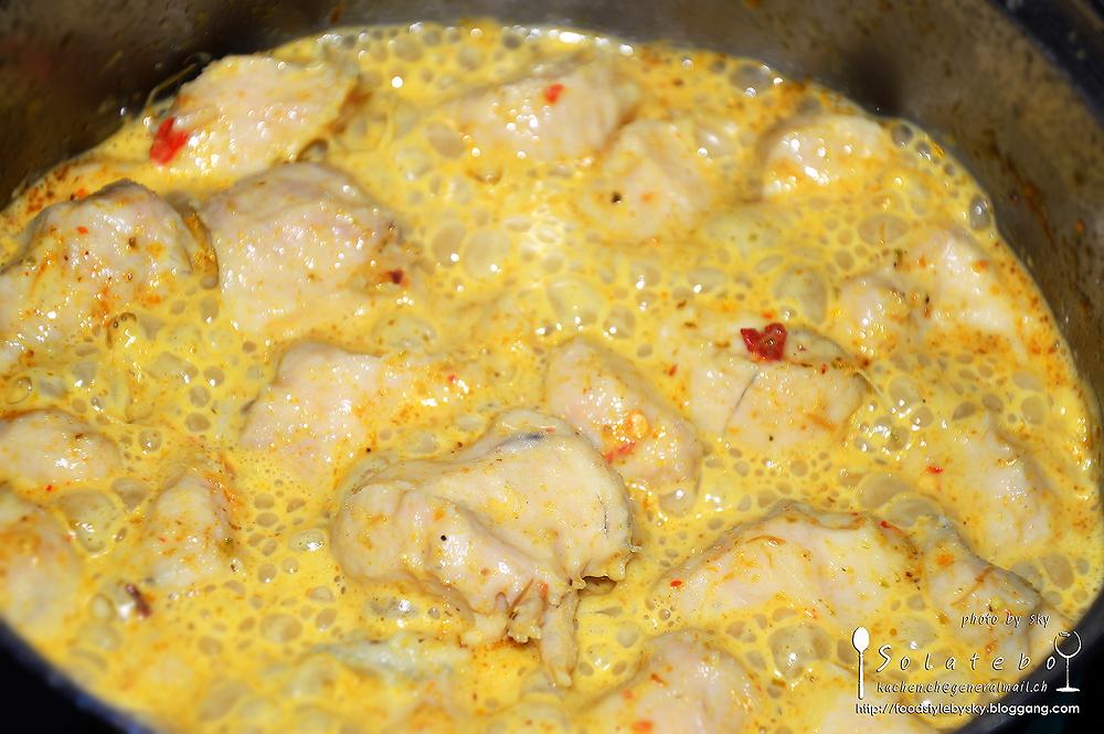 3.พอกะทิแตกมัน จนเป็นที่พอใจระหว่างผัดแล้วก็เติมหัวกะทิส่วนที่เหลือลงไปให้หมดเลย