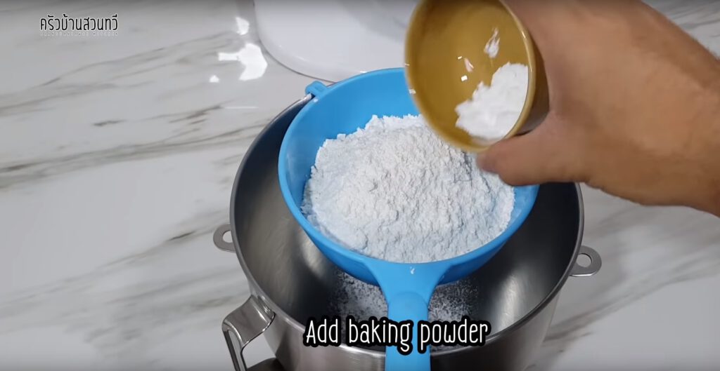 1. ร่ อ นแป้งสาลีคัดพิเ ศ ษ ผงฟู ให้เข้ากันเตรียมรอไว้ก่อน