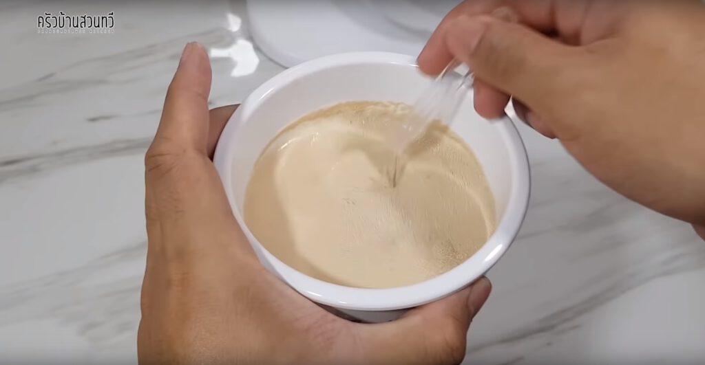 3. นำแป้งมาผสมรวมกับของเ ห ล วในข้อที่ 2 ด้วยการค่อยๆ ใส่ลงไปทีนะนิด