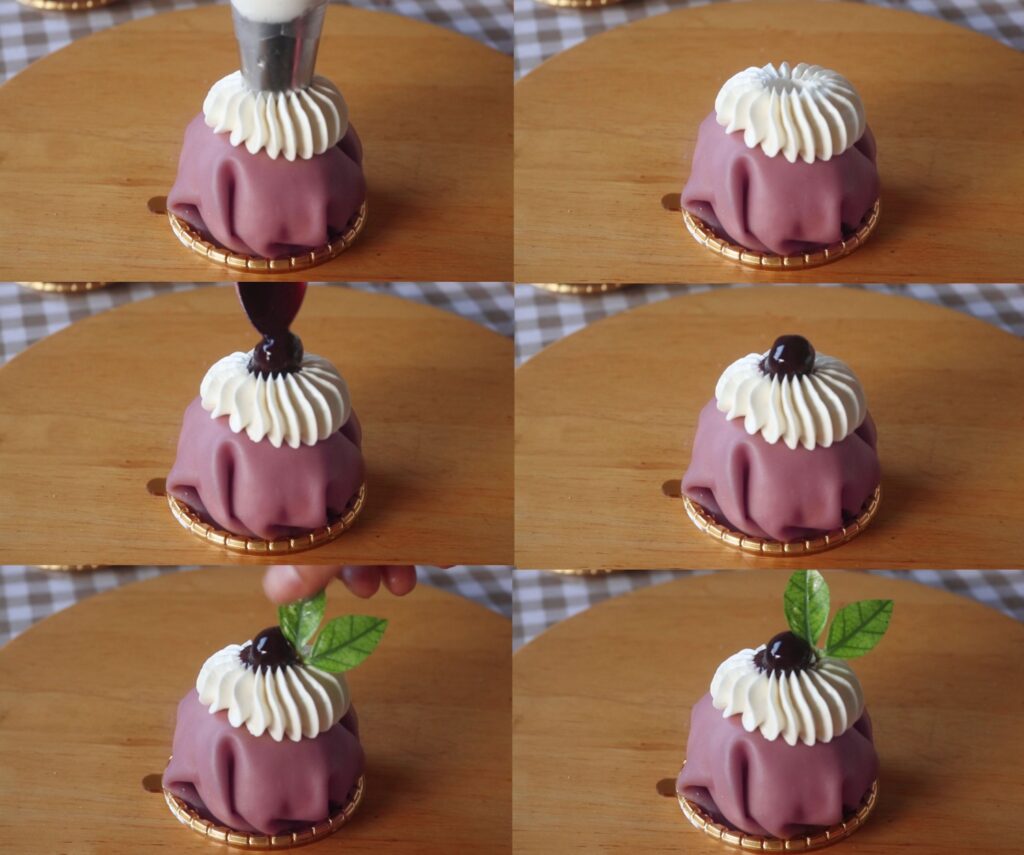 10. วางแผ่นเครปบนถ้วย บี บวิปปิ้งครีมลงไป ส อ ดไ ส้ด้วยซอสบลูเบอรี่