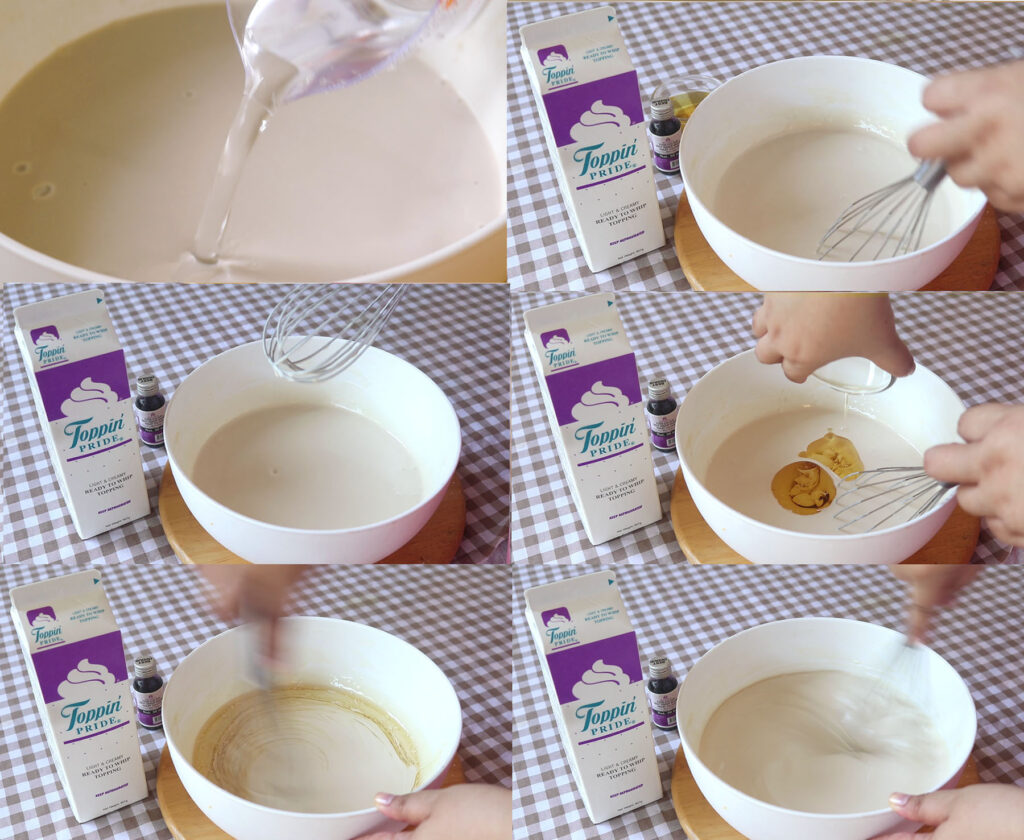 9. ตี ทอปปิ้ง ไพร์ด by ริชส์ โปรดักส์ บนช ามน้ำแข็งหรือน้ำเย็นจัด หากตีในห้องที่มีอุณหภูมิร้ อ น วิปปิ้งครีม