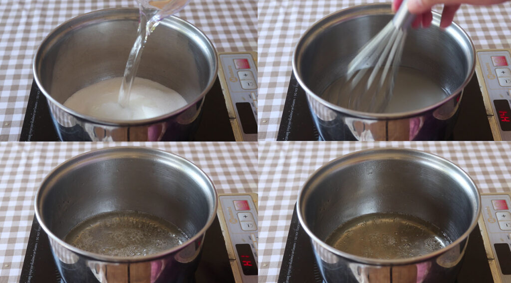2. จากนั้นเทน้ำเปล่าและน้ำมันรำข้าวลงไป