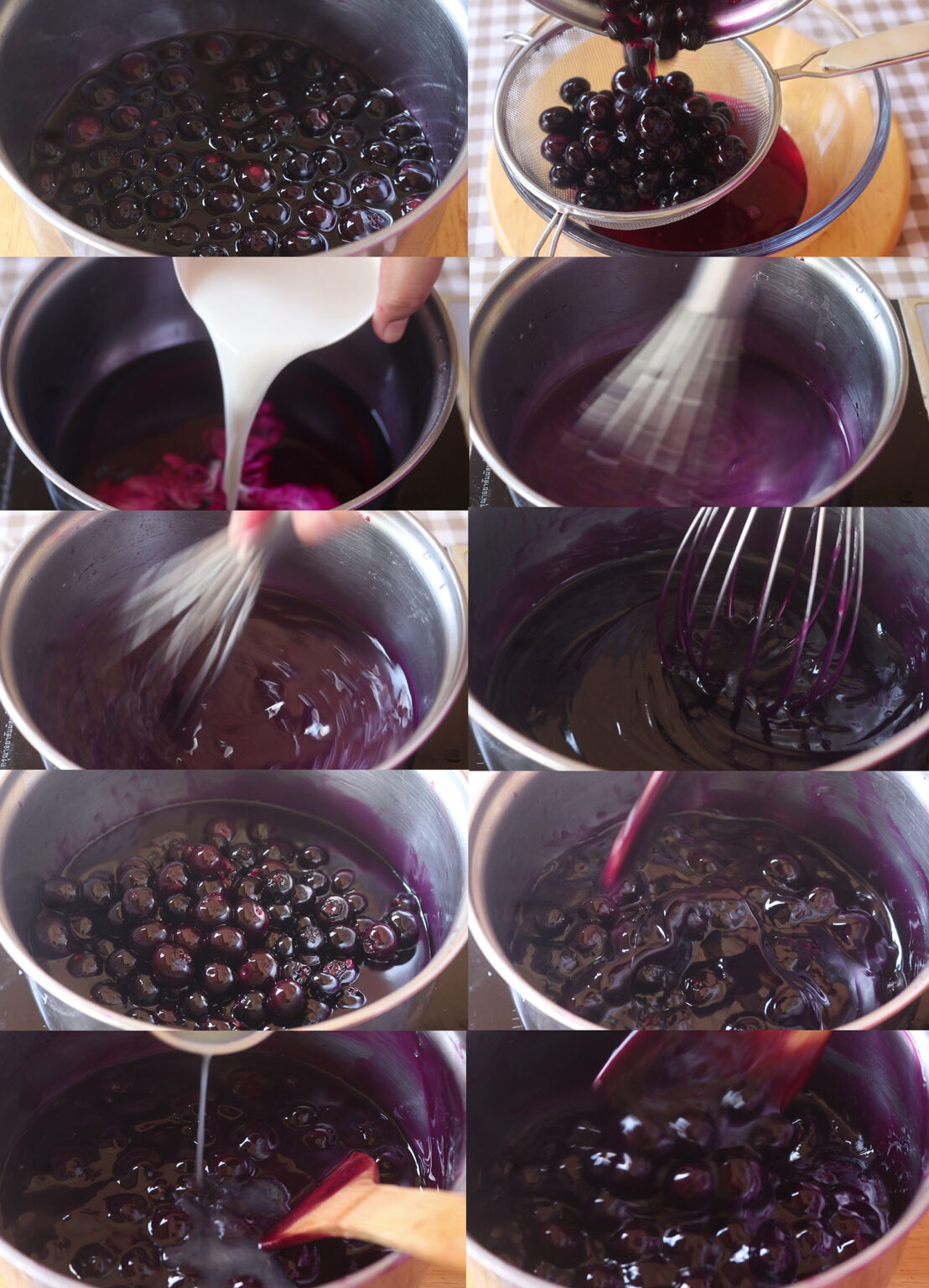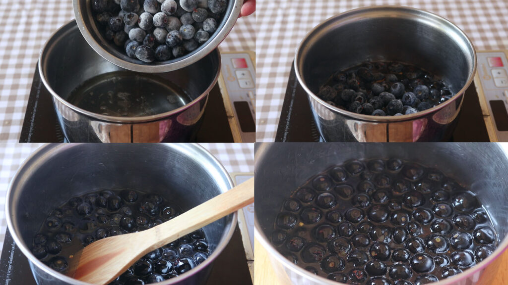 นำไปกวนด้วยไ ฟอ่อน-กลางจนมีลักษณะข้นขึ้น เสร็จแล้วดั บเ ต าใส่บลูเบอรี่ลงไป ตามด้วยน้ำเลม่อนหรือมะนาว