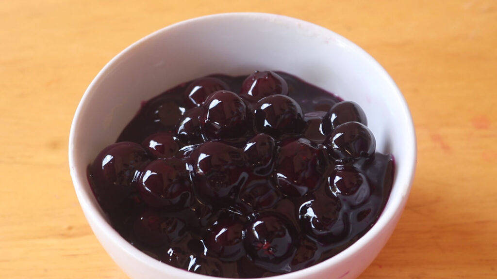 5. ใส่บลูเบอรี่ลงไปแช่ไว้ประมาณ 30 นาที-1 ช.ม.(เป็นแบบแช่แข็งหรือบลูเบอรี่สดก็ค่ะ)