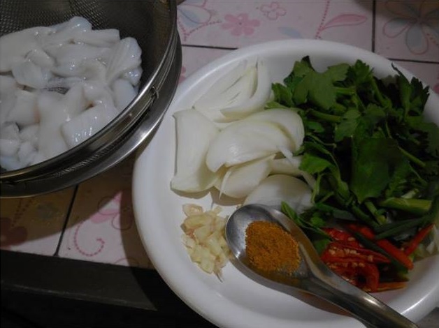 1.ปล าหมึ ก (วันนี้ใช้ปล าหมึ ก หอมตัวกลางๆค่ะ) 1 ตัว