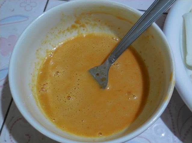 1.ผสมไข่ น้ำพริกเ ผ า กะทิ ซีอิ๊วขาว น้ำตาล คนให้เข้ากัน เตรียมใส่ถ้วยไว้