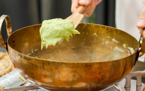 (ถ้าต้องการสีที่หลากหลาย และกวนแป้งเพียงครั้งเดียว สามารถใช้สีผสมอาหารได้ โดยแบ่งแป้งตามจำนวนสีที่ต้องการ