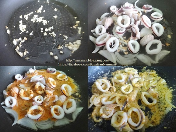6. ใส่ปล าห มึ กส ด ลงไปผัดให้พอ สุ ก