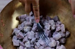 จนจะมีเนื้oที่เนียน และมีความแห้ง ที่จะสามารถนำมาปั้นเป็นก้อนได้