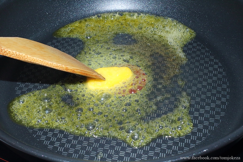 3.ตั้งกระทะให้ร้oน เอาเนยลงไปละลาย