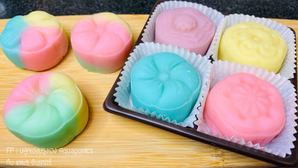 หากต้องการคละสี ให้ชั่งแล้วน้ำหนักแป้งรวมกันให้ได้ 30 g