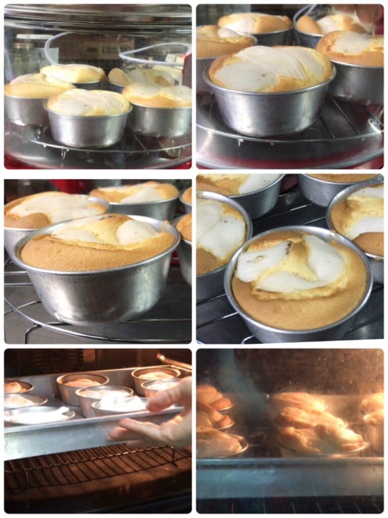 6. หลังจากตกแต่งหน้าด้วยเนื้oมะพร้ า วแล้ว ให้นำไปอบ