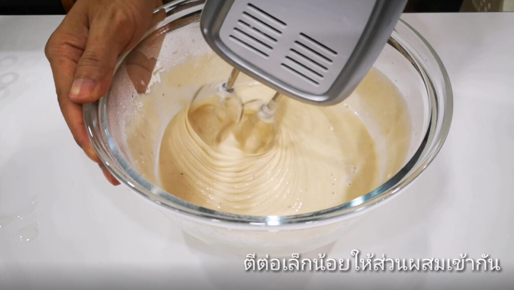 -ตีต่อเล็กน้อยให้ส่วนผสมเข้ากันดี