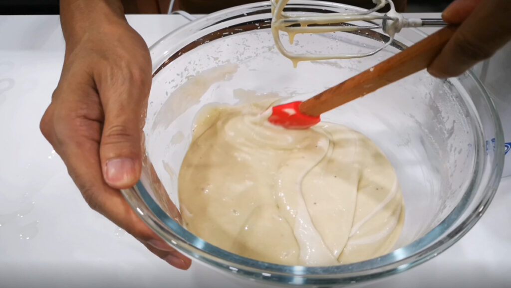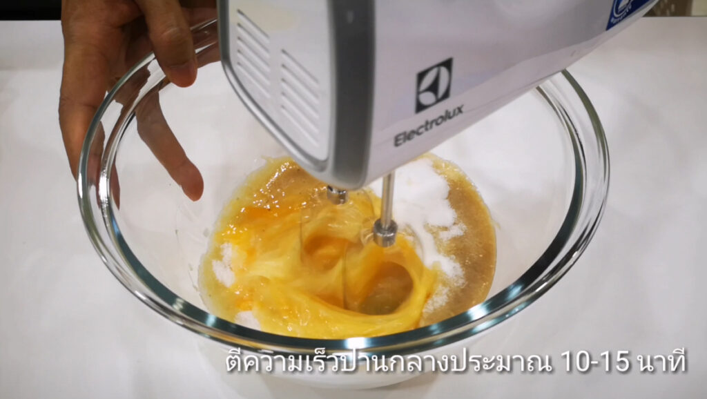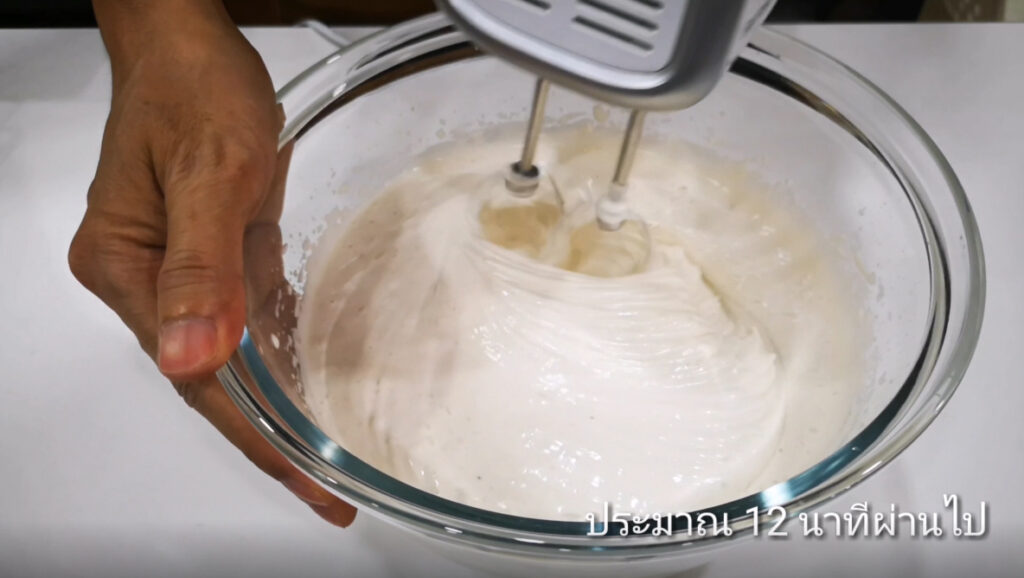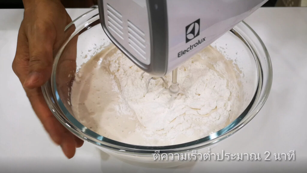 -ตีความเร็วต่ำประมาณ 2 นาที ให้แป้งเข้ากันดี