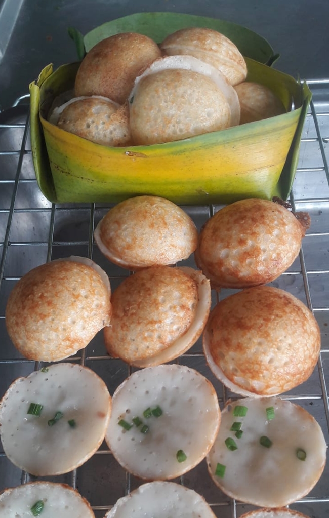 5. หรือจนหน้าขนมสุ กใช้ช้อนแคะออกจากห ลุ มขนมครก จัดวางใส่จาน