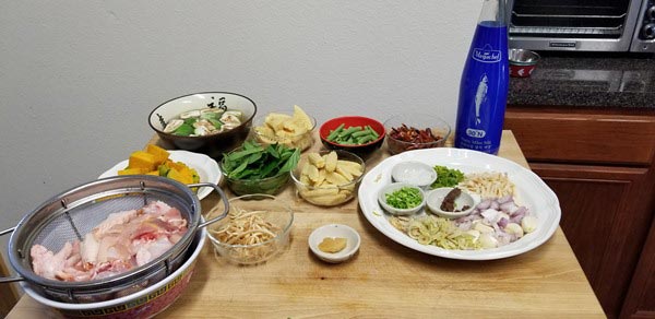เ นื้ อไก่สดหั่ นชิ้ นตามชอบ500g. ฟั กทองหั่ นชิ้ นมากน้อยตามชอบ มะเขือพวงมากน้อยตามชอบ