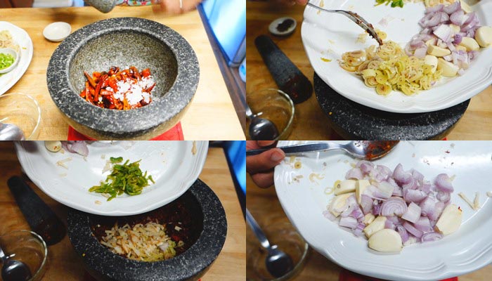 พริกขี้หนูสวน 2ช้อนแกง พริกไทยเม็ด 1 ช้อนแกง หอมไทยซอย2ช้อนแกง กระเทียมไทย 1 ช้อนแกง