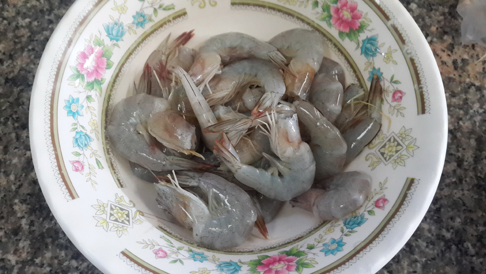 1…ล้างกุ้งให้สะอาด พักไว้