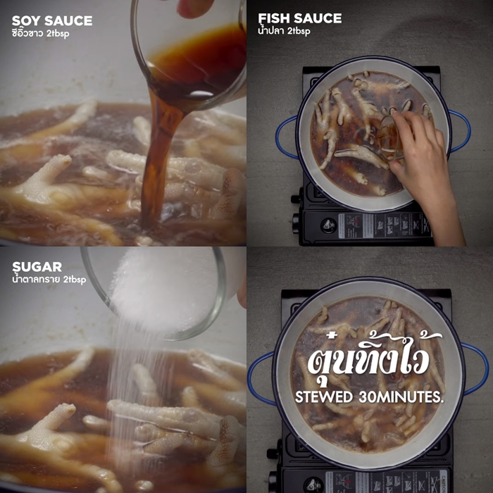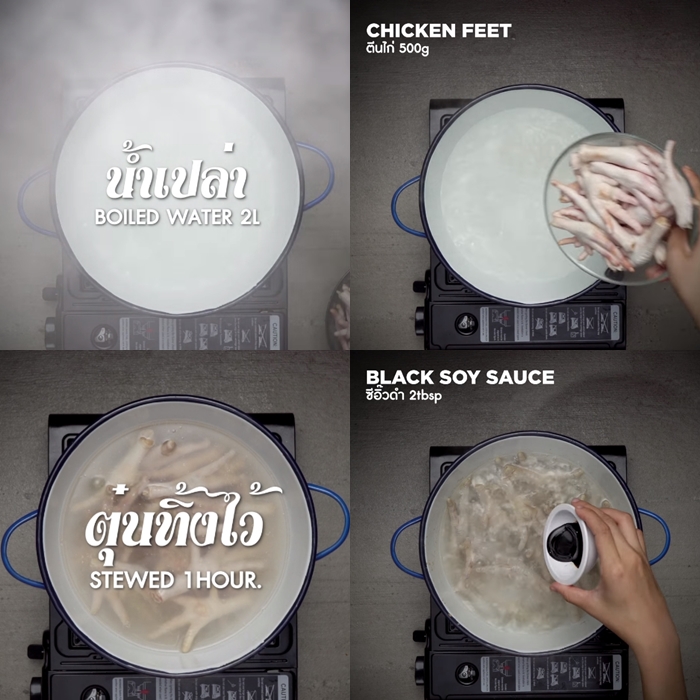 ตามด้วยร ากผักชี ต้มตี นไก่ไปจนกว่าจะครบ 1 ชั่วโมง