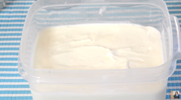 ► นำส่วนผสมใส่ในภาชนะสเตนเลส แช่ช่องฟรีซ ทุก ๆ 30 นาทีแล้วเอาออกมาคนให้เข้ากัน ประมาณ 10 ครั้ง