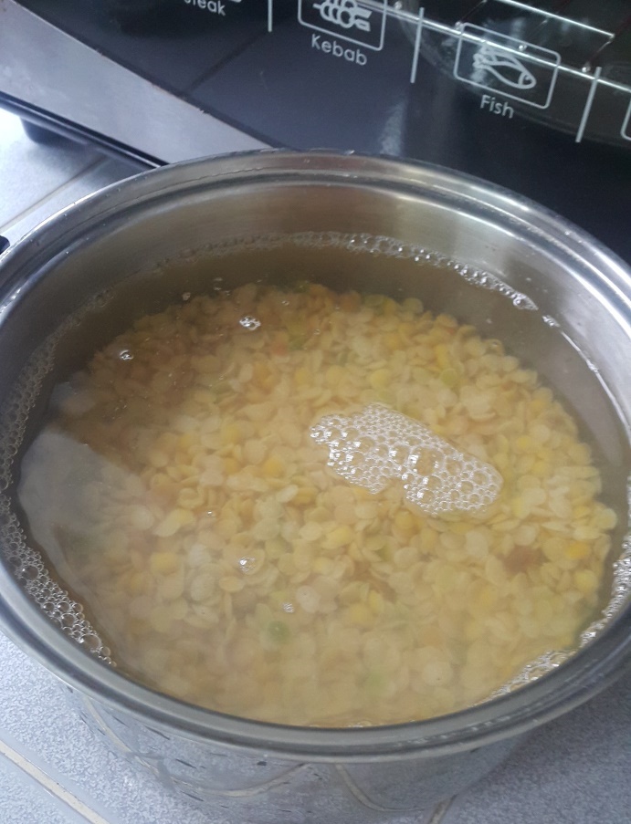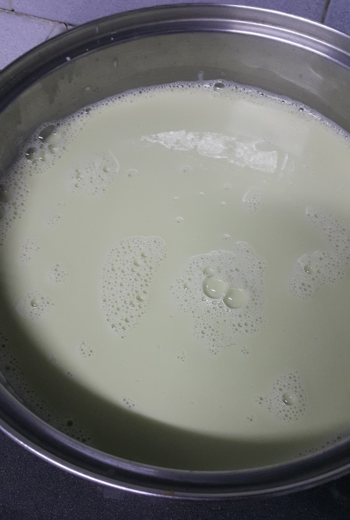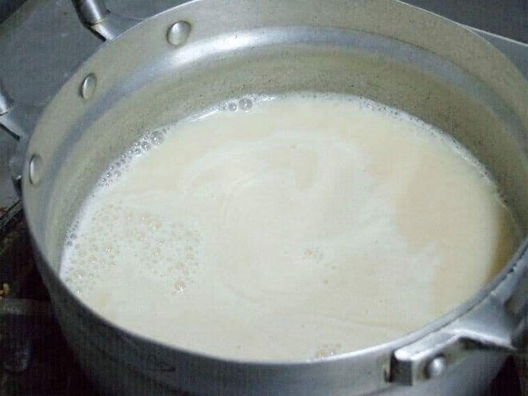 และกรองด้วยผ้าขาวบางอีกครั้งก่อนนำไปต้ม ใส่เกลือเล็กน้อย