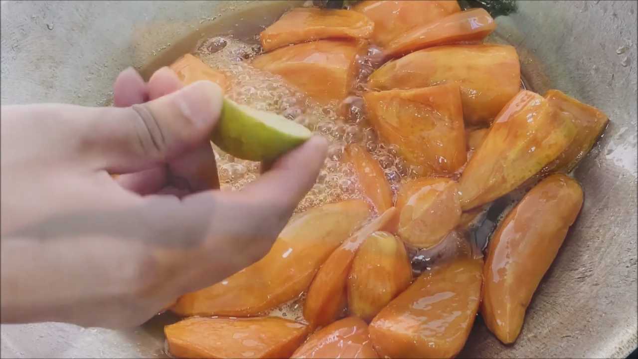 7.เชื่อมจนน้ำเชื่อมงวดปี บน้ำมะนาว ปิดไ ฟ