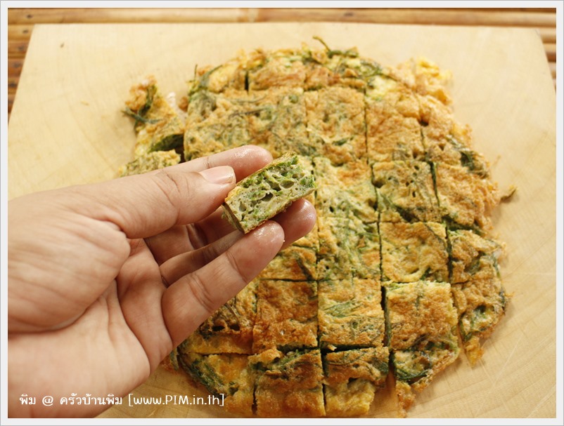 1.เจียวไข่ชะอม หั่นเป็นชิ้ นเตรียมไว้
