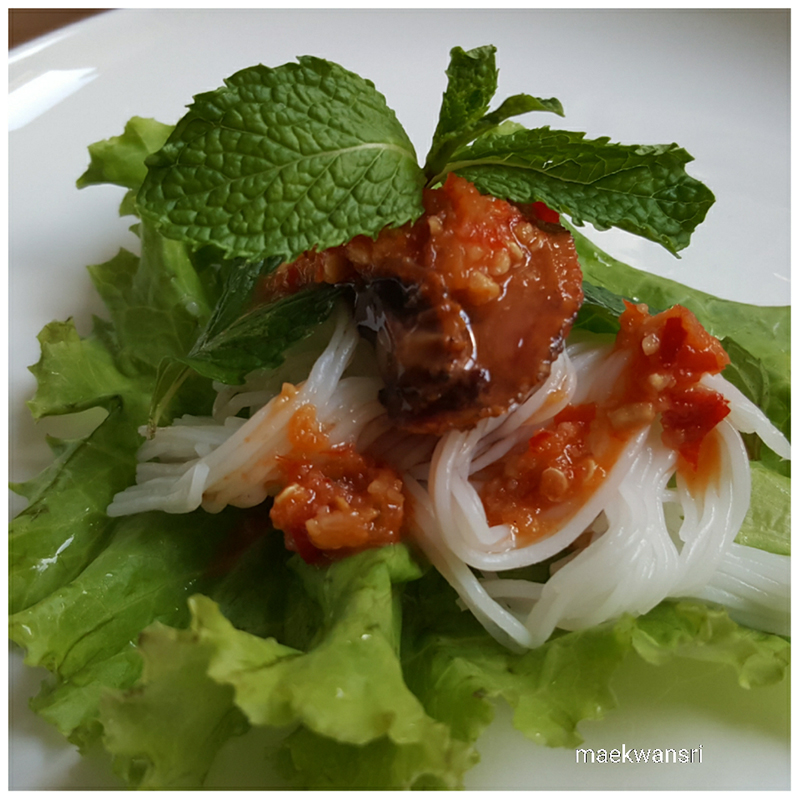 ควรรับประทานคู่กับผักใบสะระเหน่ และเส้นขนมจีนหรือเส้นหมี่ขาวราดน้ำจิ้ม น้ำลายไหลเลยค่ะ