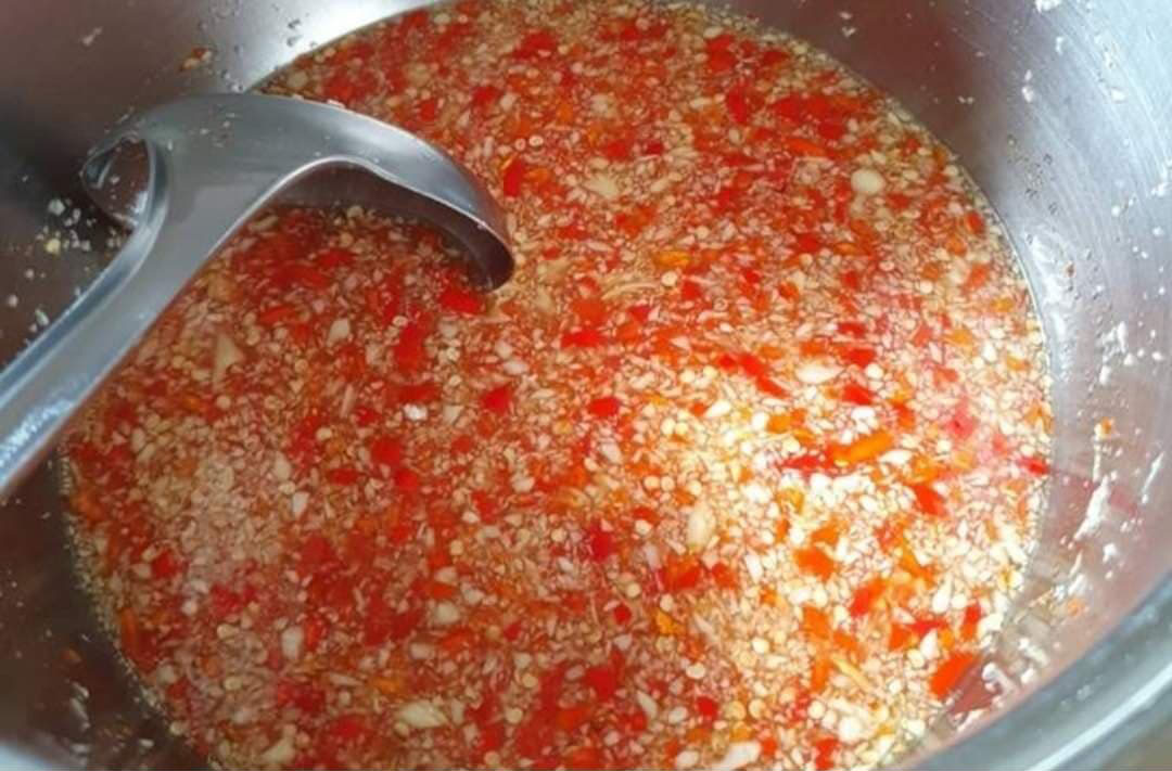 แล้วทิ้งไว้ให้เย็น นำผักชี พริกสดและกระเทียมที่ล้างน้ำเตรียมไว้ใสลงในโถปั่นเติมน้ำตาลที่ปรุงไว้จนท่ ว ม