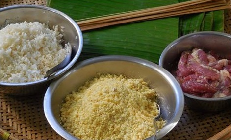 1. ข้าวเหนียว 4 ถ้วย (นิยมใช้พันธุ์เ ขี้ ย วงู ล้างแล้วแช่น้ำไว้ 4 – 6 ชม. )