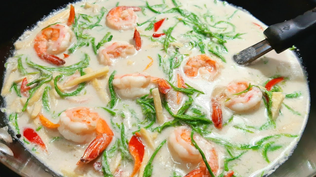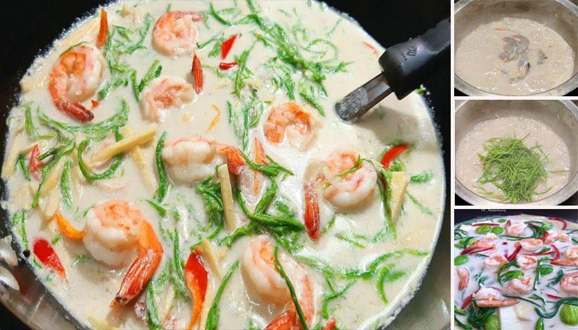 แจกสูตรทำ ต้มกะทิชะอมกุ้งสด กุ้งแน่นๆน้ำกะทิเข้มข้น อร่อยฟินได้ง่ายๆ (ดูส่วนผสม)