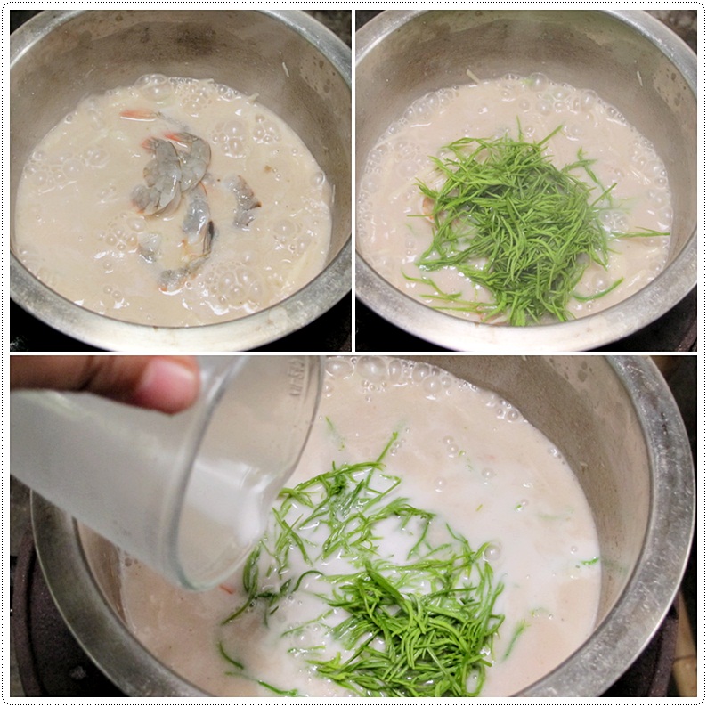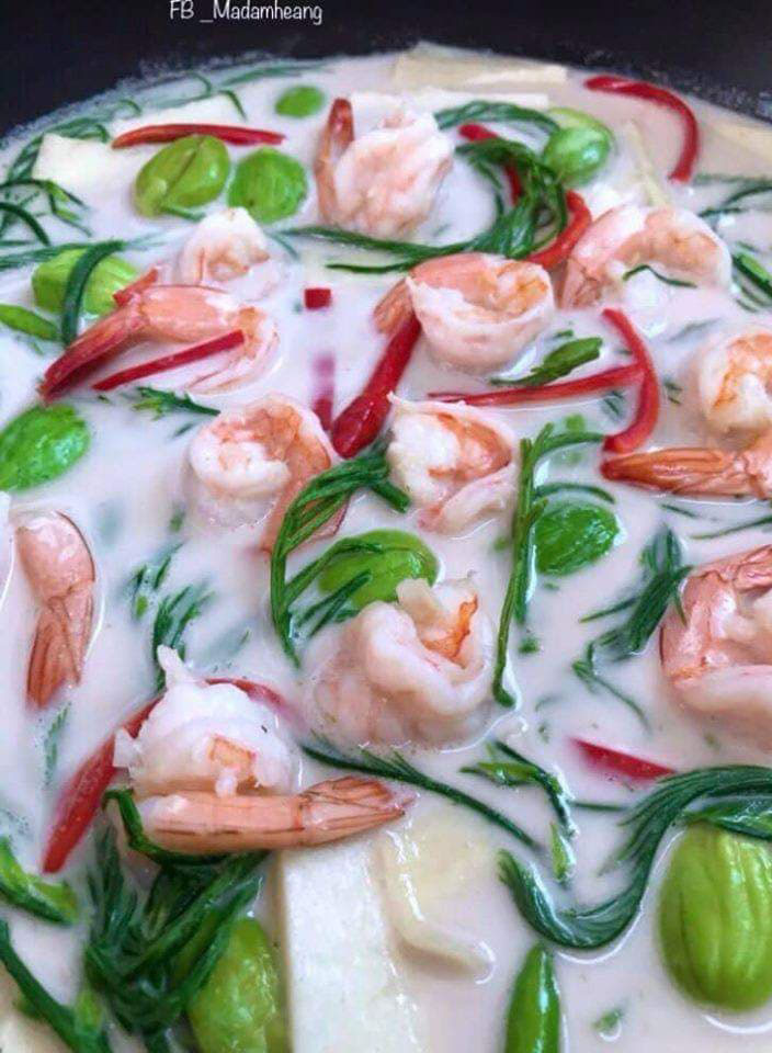 -ใส่หางกะทิ รอเ ดื อ ด ใส่กุ้งสด หน่อไม้ สะตอ เ ดื อ ดอีกทีปรุงรสได้เลยค่ะ ชิมรสดูให้ออกมันหวานกะทิ