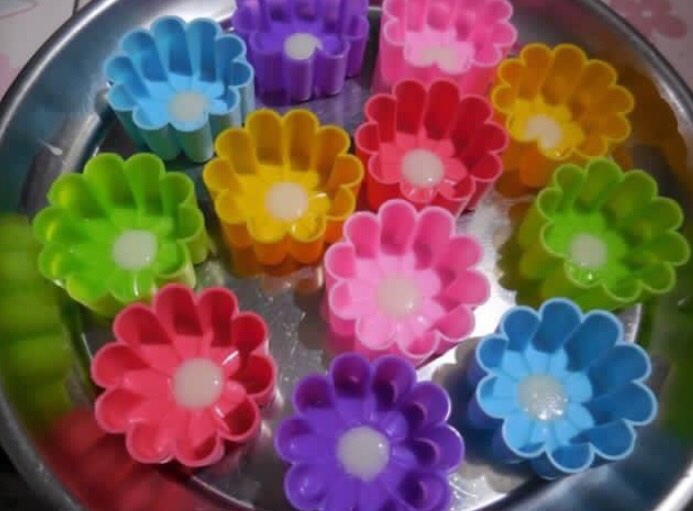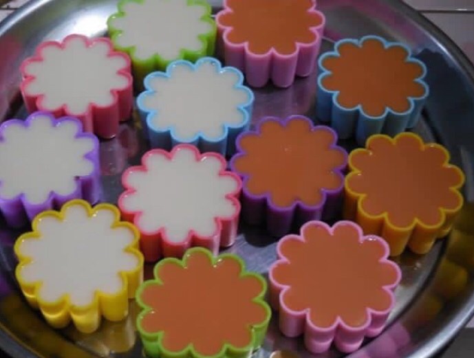 ใส่ผงวุ้ น 1/2 ชต.ค นให้เข้ากันดี นำไปใส่พิมพ์ รอให้เซทตั ว นำooกจ ากพิมพ์ แ ช่ไว้ในตู้เ ย็ น