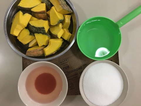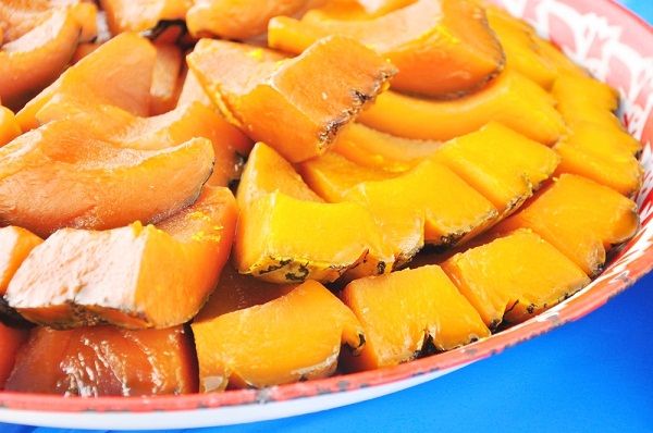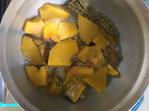 1.หั่ น ฟักทองเป็นชิ้นตามชอบ ล้างให้สะอาด และแช่น้ำปูนใส ประมาณ 5 นาที