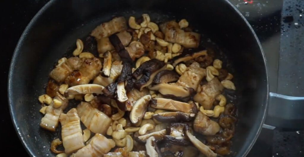 4. ใส่หมูสามชั้นลงไป