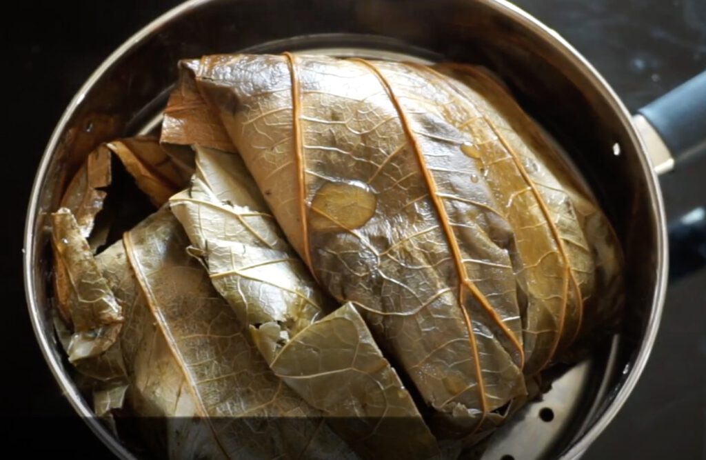 12. นำใบบัวมาวาง (ถ้าใช้ใบแห้ง และบางแผ่นดูกรอบๆมีรูประปราย หั่ นครึ่งเอามาซ้อนกันได้ค่ะ กันรั่ ว)