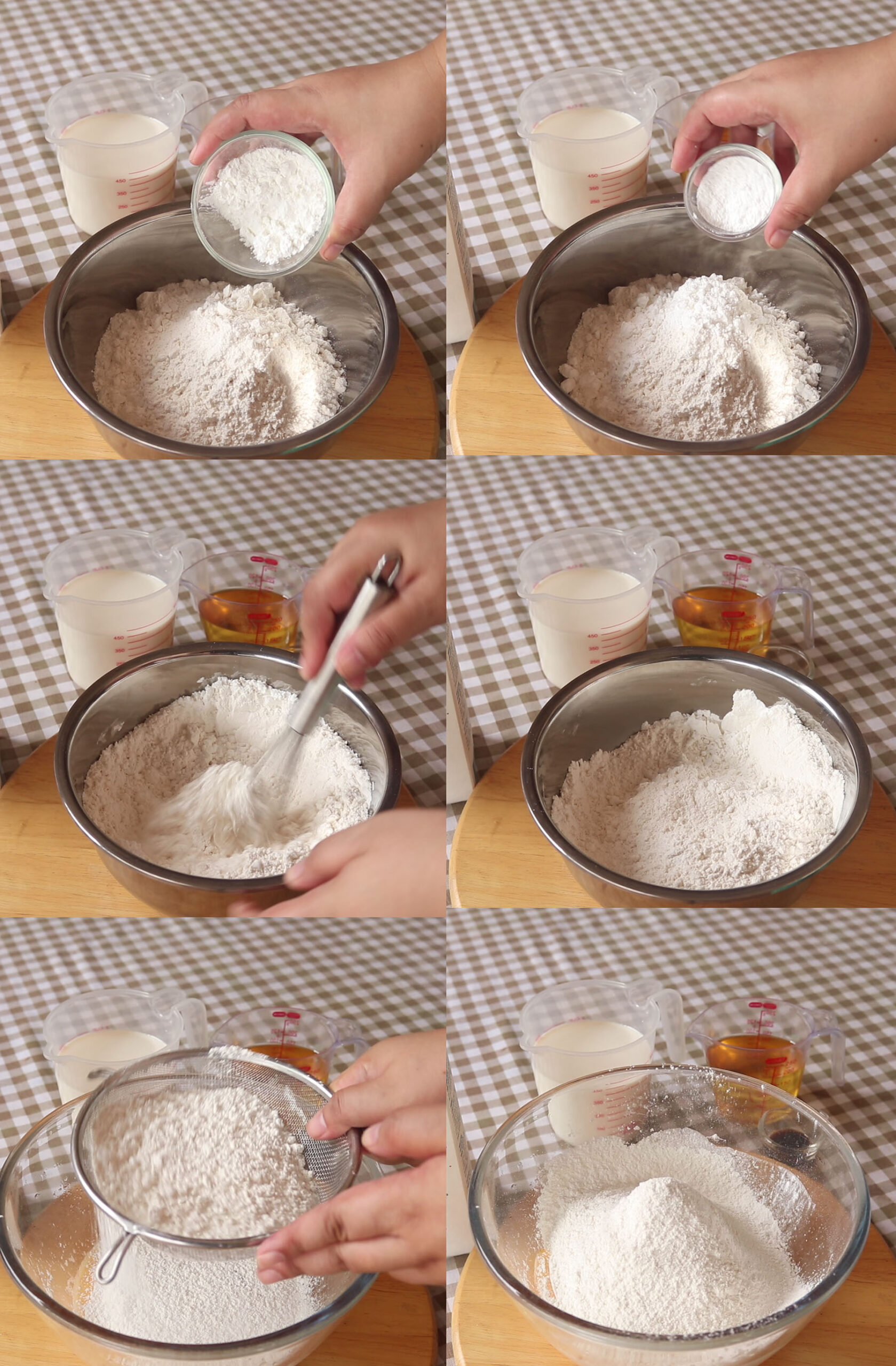 1.แป้งสาลีอเนกประสงค์ 520 กรัม 2.น้ำต าล 160 กรัม