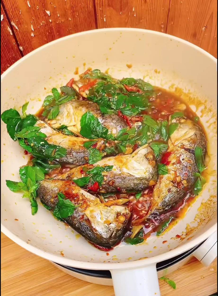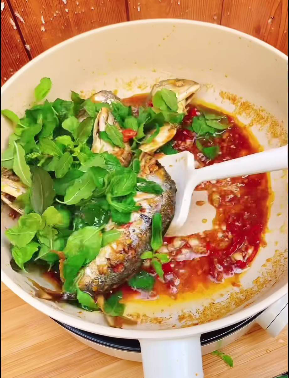 5.ใส่ปล าทูที่ทอดไว้ลงไป