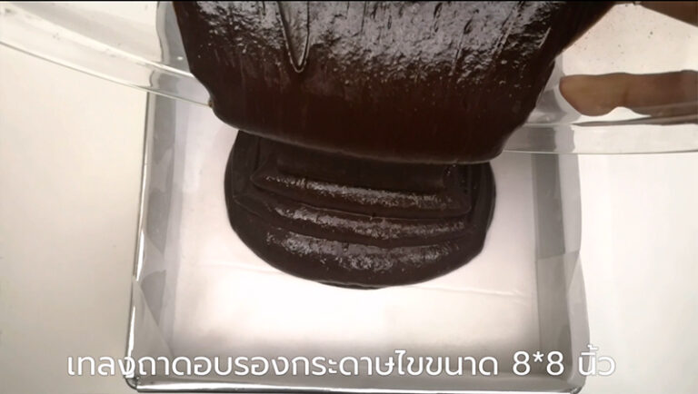 – เ ทลงถาดอบรองกระดาษไ ข ขนาด 8*8 นิ้ว