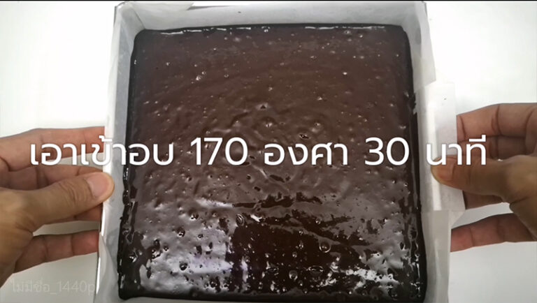 – เอียงถาดไปมาให้ส่วนผสมเท่ากันทั้งถาด