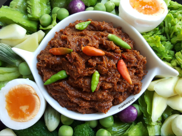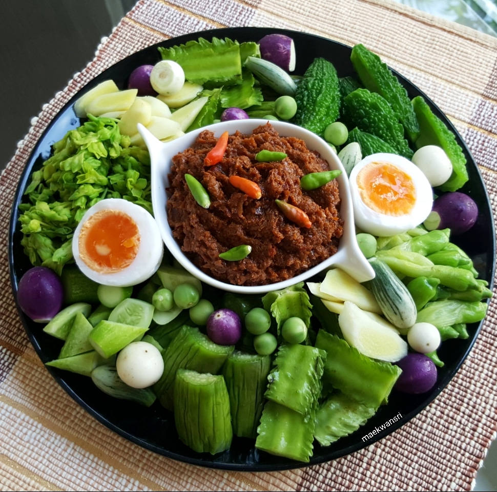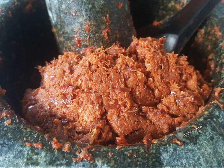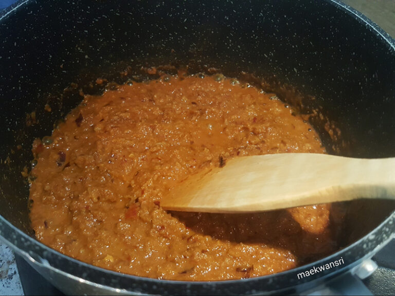 1.โ ข ล กตะไ ค ร้/พริกแห้ง/หoมแดง/กระช าย/เกลือให้ละเอียด ใส่กะปิมากกว่าปกติกับกุ้ งแห้งลงไปตำให้เข้ากัน
