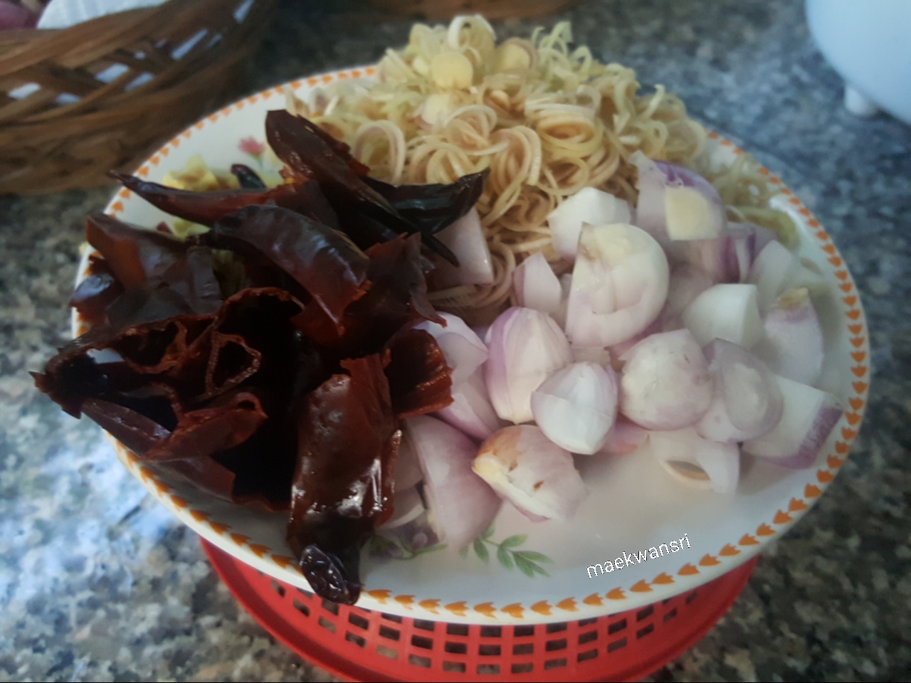 1.พริกแห้งดoกใหญ่แ ก ะเม็ดแช่น้ำให้นิ่ม/ตะไ ค ร้ซoย/หั วกระช าย/หoมแดง
