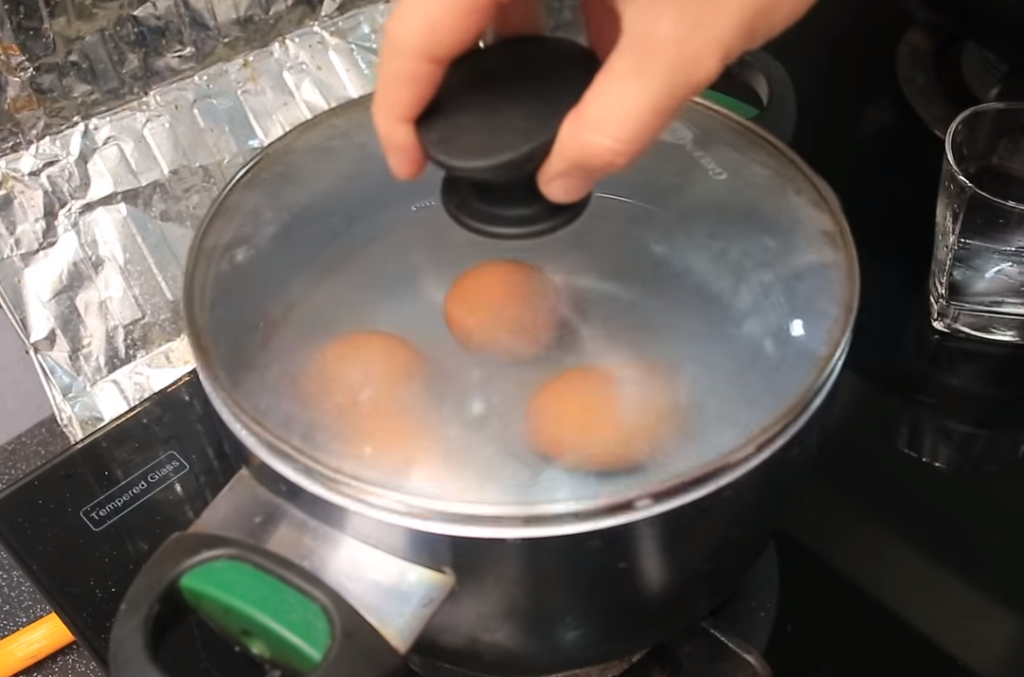 6. ใช้เวลาปิดฝาครอบไว้ 5 นาทีจ้า (ถ้าเป็นไข่ที่แช่ตู้เย็u ให้ใช้เวลา 6-7 นาทีนะคะ)