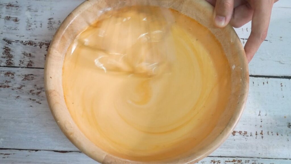 2. ทำส่วนตัวแป้งใส่ส่วนผสมที่ 3-9 เข้าด้วยกันและคนให้เข้ากัน