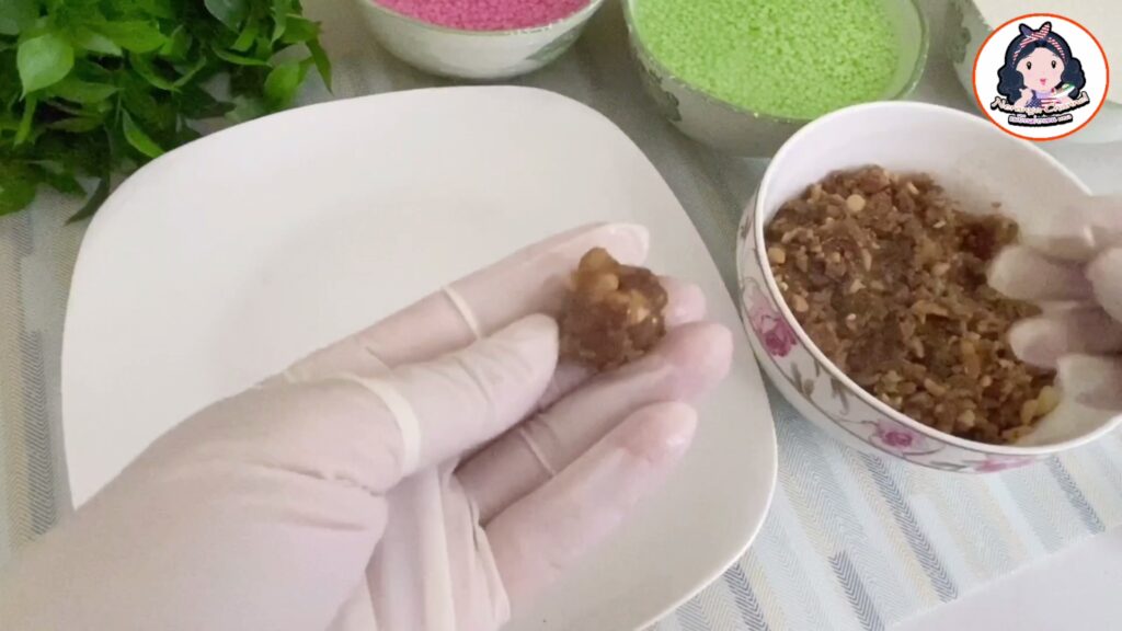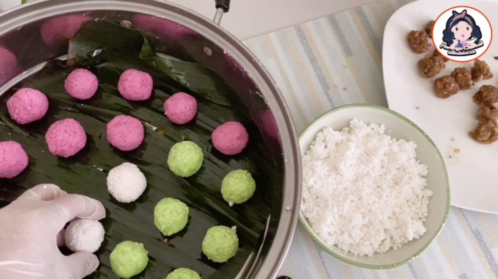 **ครบเวลา เตรียมถาด ทาด้วยน้ำมัน เอาสาคูใส่ลงไป คลุกขนมจะได้ไม่ติดกัน