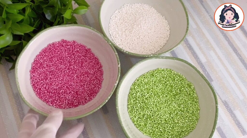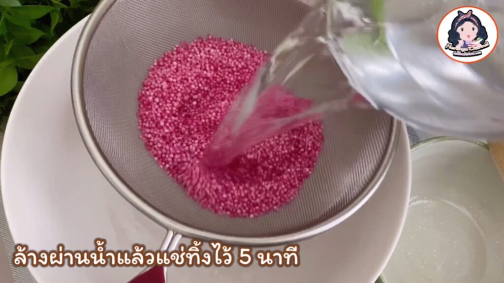 – เม็ดสาคูเล็ก สีชมพู 100 กรัม