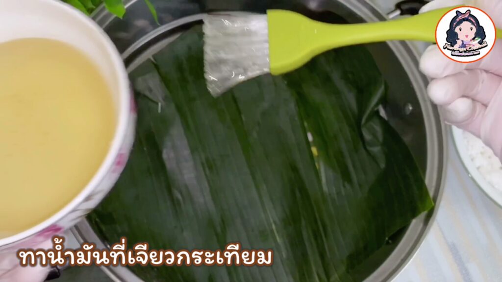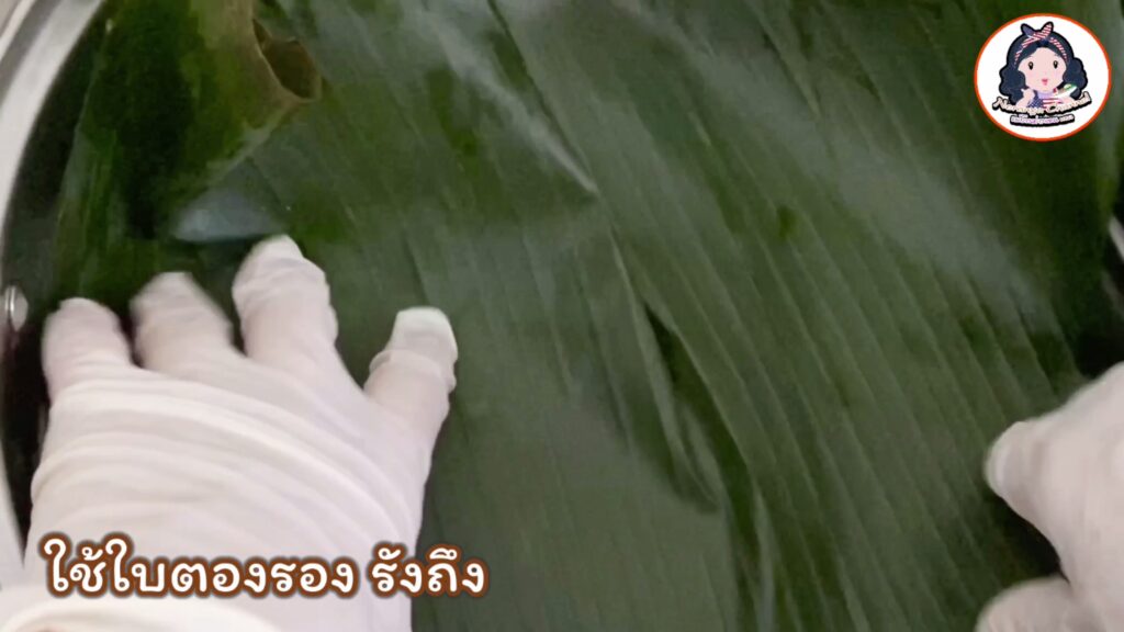 **เตรียมรังถึง รองด้วยใบตอง ทาน้ำมัน